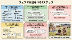フェスで友達を作りたい陰キャ・ソロ参加者向けに、自然に仲良くなれる4ステップや会話例、話しかけやすくなるアイテム、準備のコツをわかりやすく解説。初対面が苦手でも使える実践テク多数。