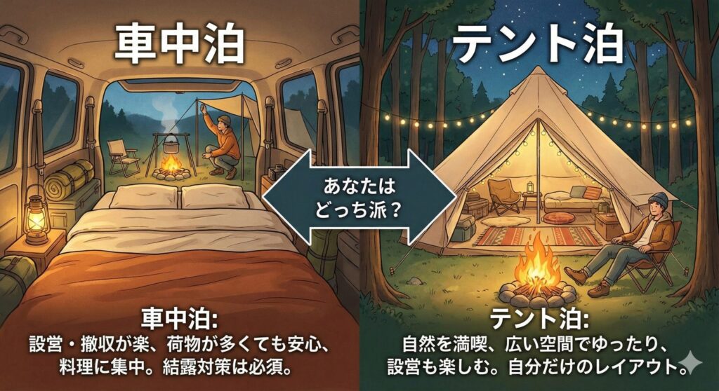 車中泊 vs テント泊:それぞれのメリット・デメリット