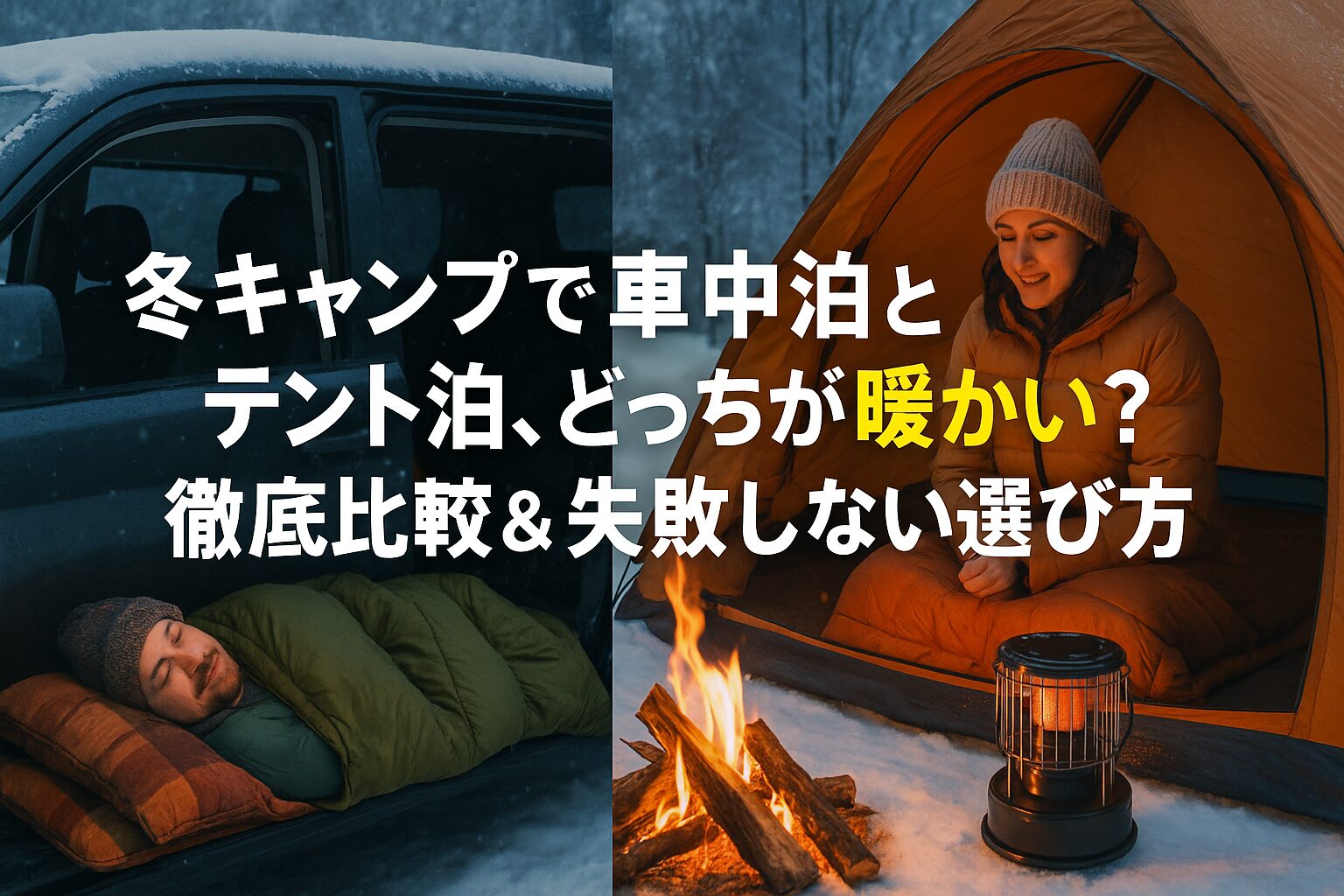 1. 「寒くて一睡もできなかった」冬キャンプの車中泊 vs テント泊、どっちが暖かい?失敗しない選び方