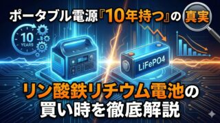 ポータブル電源は「キャンプのため」に買うと高く感じますが、「防災のため」と考えれば必要な投資。しかも両方に使えるなら、むしろお得です。容量は最低500Wh、できれば1000Whあると、スマホ充電や照明にも余裕を持って対応できます。