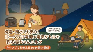 ポータブル電源+電気ケトルの組み合わせは、停電時の「温かい食事」を確保する最強コンビ。お湯さえ沸かせれば、アルファ米もフリーズドライスープも、カップ麺だって作れます。キャンプで「ケトルだけ調理」を一度試しておくと、いざという時の自信になりますよ。