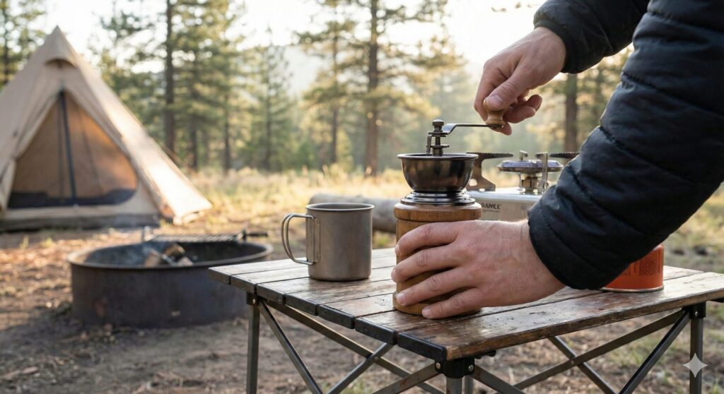 キャンプの朝、挽きたてのコーヒーを淹れる時間。それは、忙しい日常では味わえない贅沢です。