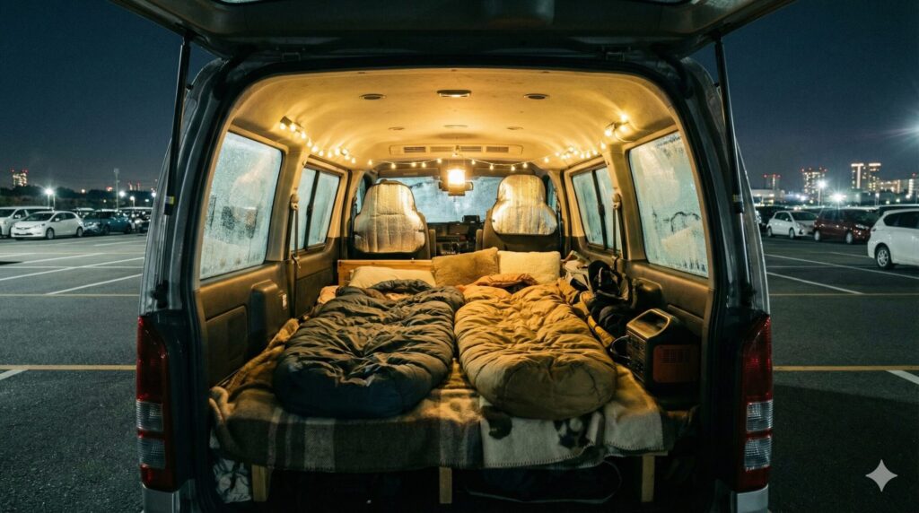 年末のホテル料金高騰を避けたい方や、遠方から参加する方には、車中泊も選択肢の一つです。