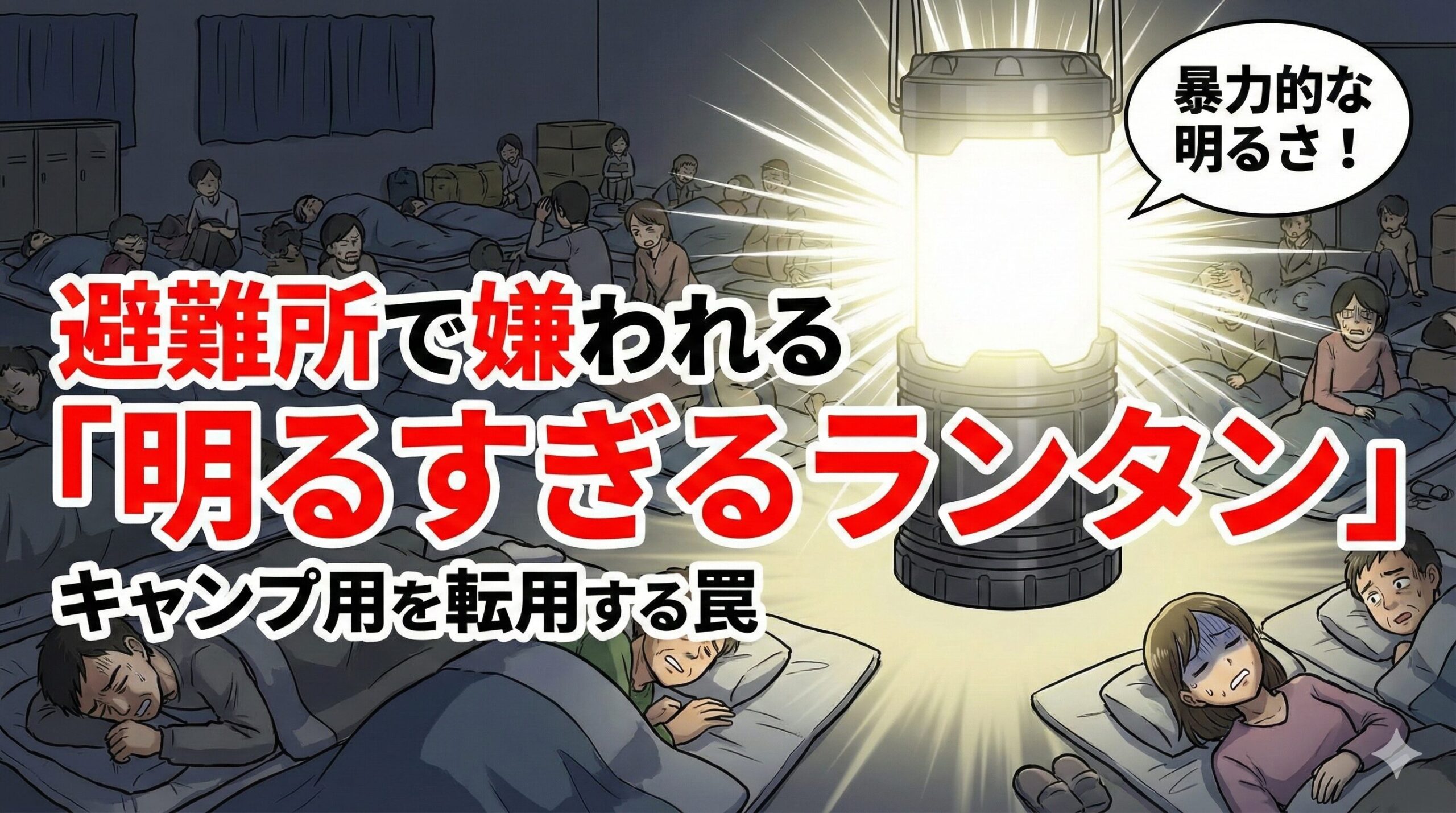 実際の避難所では、「隣の人のスマホの明かりが眩しくて眠れなかった」という声も多く聞かれます。スマホの画面でさえストレスになる環境で、キャンプ用の高輝度ランタンを点けることがどれほど迷惑か、想像に難くないですよね。