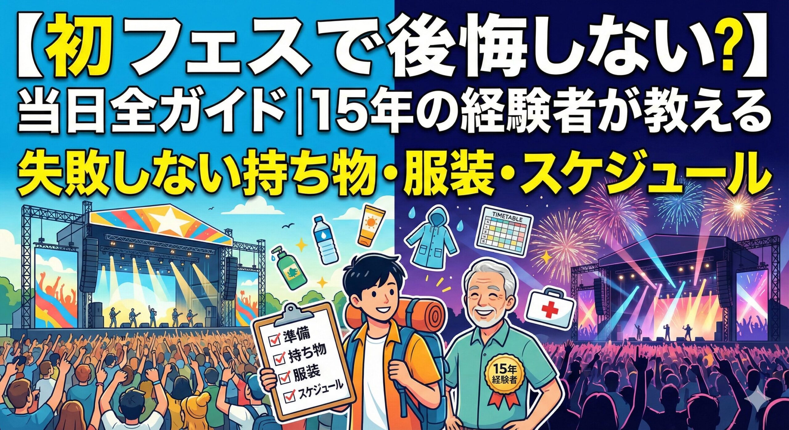 一番大切なのは、「楽しむ気持ち」です。完璧を求めず、失敗も含めてフェスの思い出にしましょう。