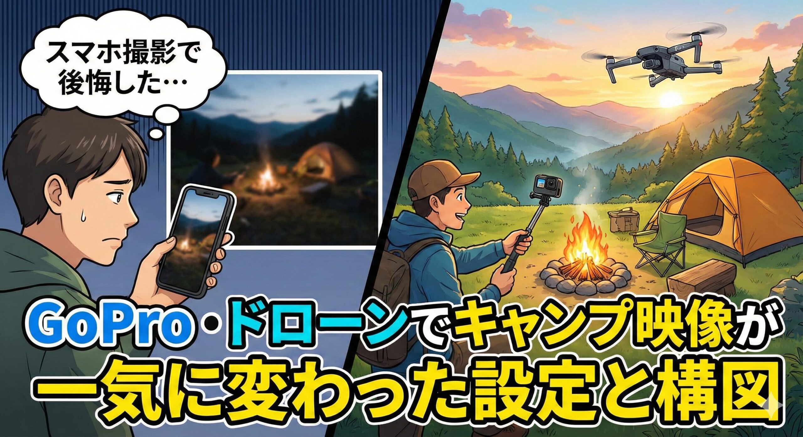 そこで次のキャンプからGoProとドローンを導入したところ、映像の質が劇的に変わりました。手ブレのない滑らかな映像、空撮による圧倒的な景色、焚火の雰囲気まで美しく記録できるようになり、家族全員が感動してくれました。この記事では、私と同じ失敗をしないために、アウトドア撮影に本当に役立つ機材の選び方とテクニックを紹介します。