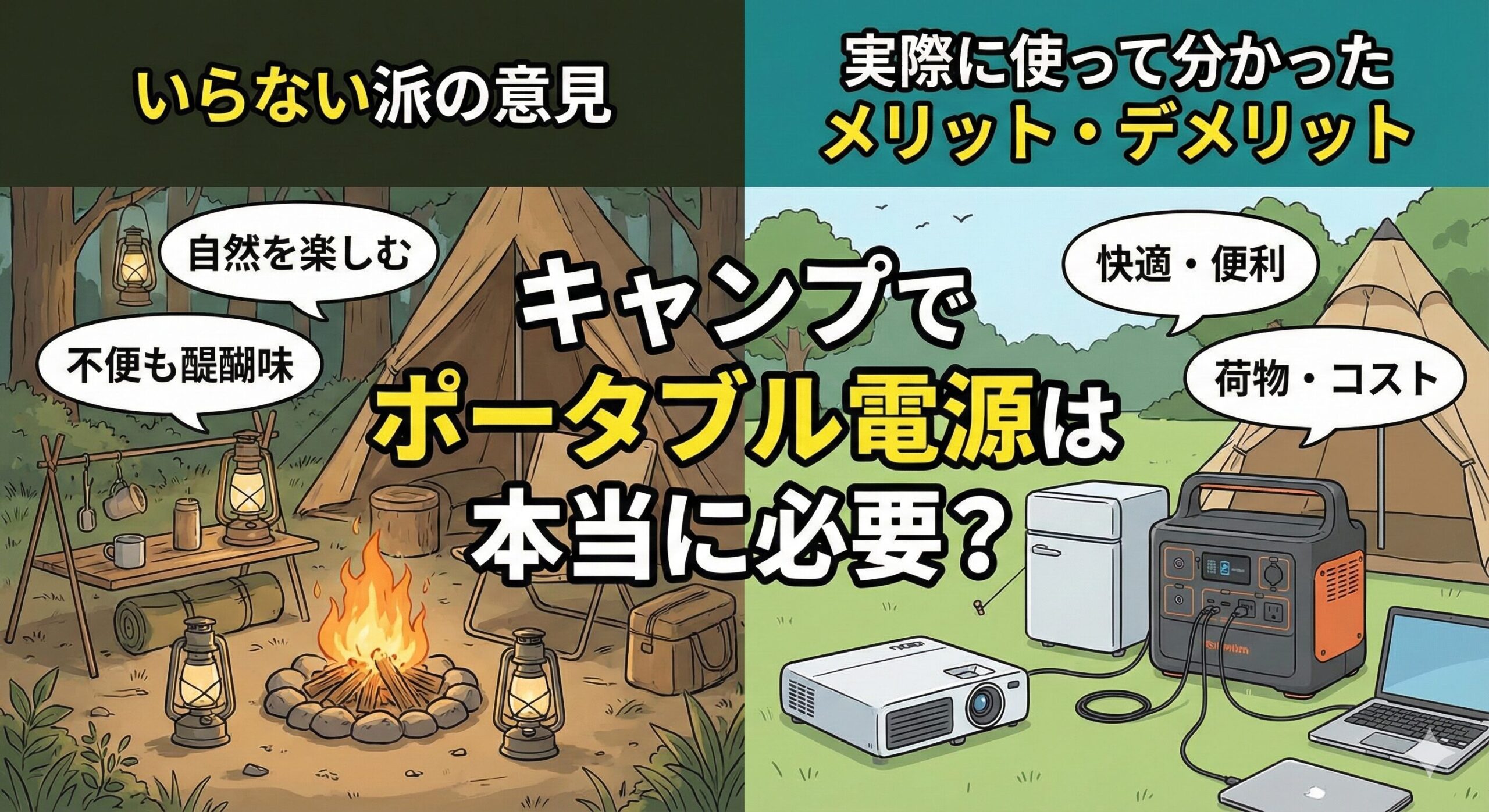 まず結論から言います。ポータブル電源が必要かどうかは、あなたのキャンプスタイルと優先順位で決まります。