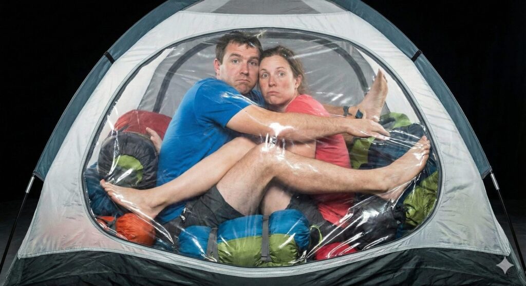 ⚠️ 重要:「2人用テント」でさえ、実際に2人で使うと荷物を置くスペースがほとんどありません。2人で快適に過ごすなら「3人用」サイズを選ぶのが鉄則です。