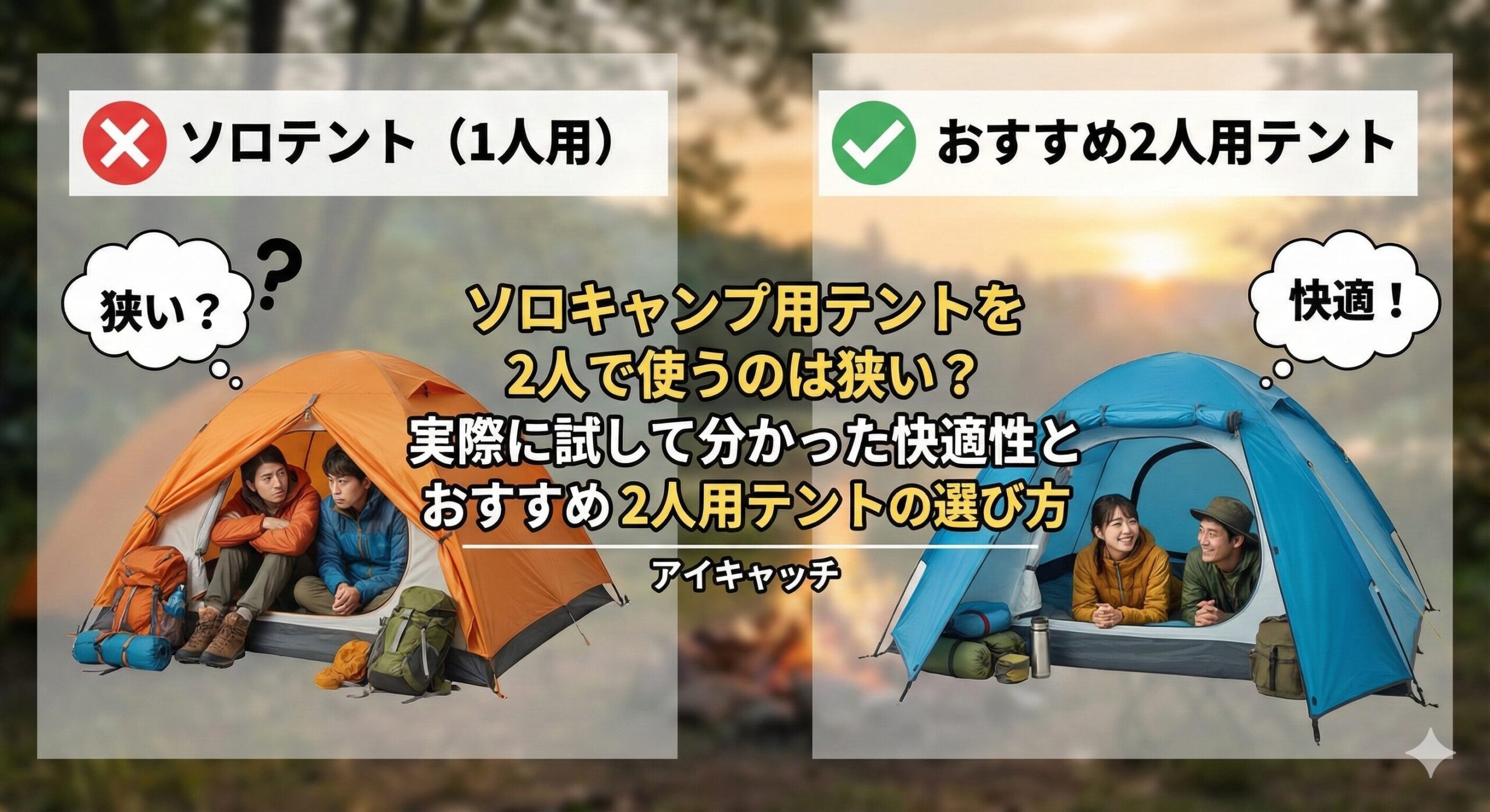 この記事では、実際にソロテントを2人で使った体験談と、なぜ狭いのか、2人用テントとの違いを徹底解説します。