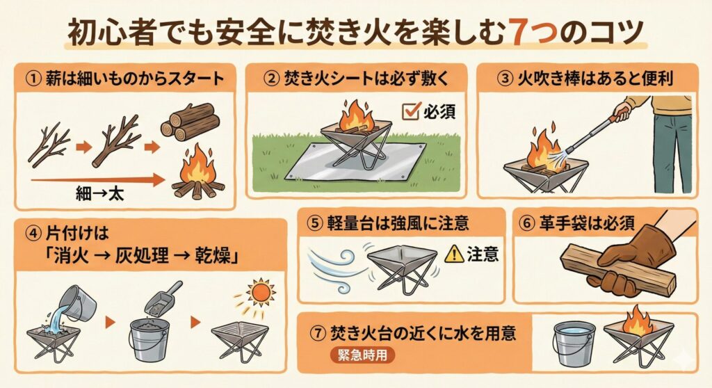 初心者でも安全に焚き火を楽しむ7つのコツ