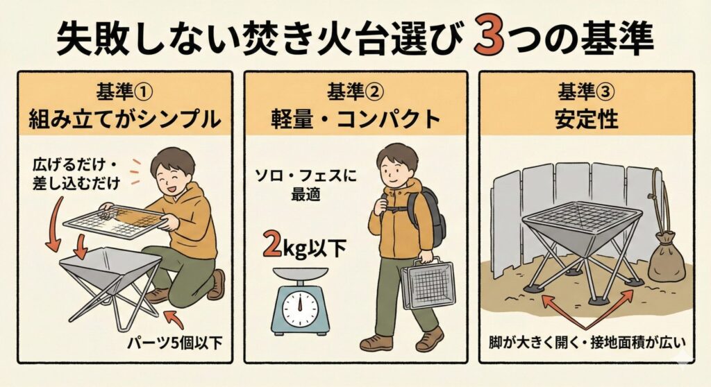 初心者が焚き火台を選ぶ時の3つの基準